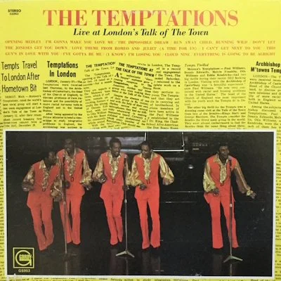 “The Temptations stood England on its ear during the two weeks the five attractive Detroit lads headlined the Talk of the Town club before SRO crowds.”