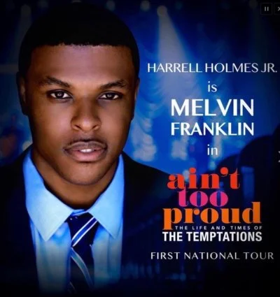Today, Holmes is a Temptation – or, more accurately, starring as one in the national touring company of Ain’t Too Proud: The Life and Times of the Temptations. Some seven months into its run, the roadshow has just finished two weeks at the Orpheum Theatre in Minneapolis, and is currently playing Cleveland; soon comes Detroit. Holmes is cast as the mighty group’s Melvin Franklin, and blessed with what one Minnesota newspaper called a “wake-the-devil” bass baritone.